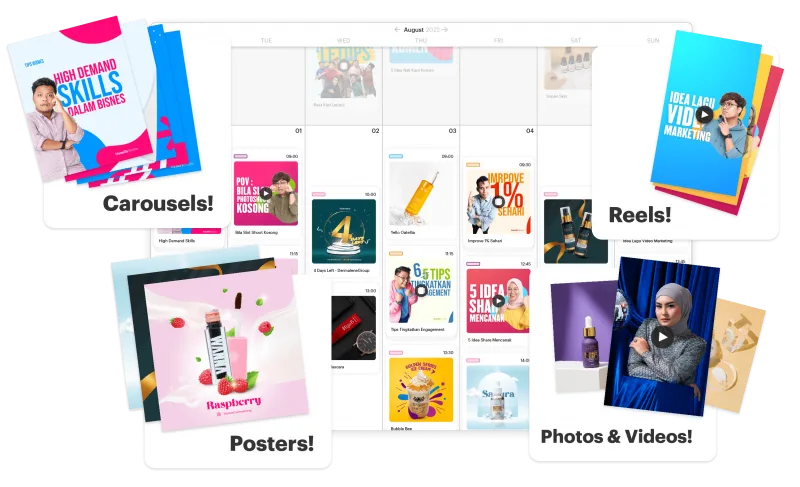 Kami bantu anda hasil content strategically & posting secara consistent seluruh social media.